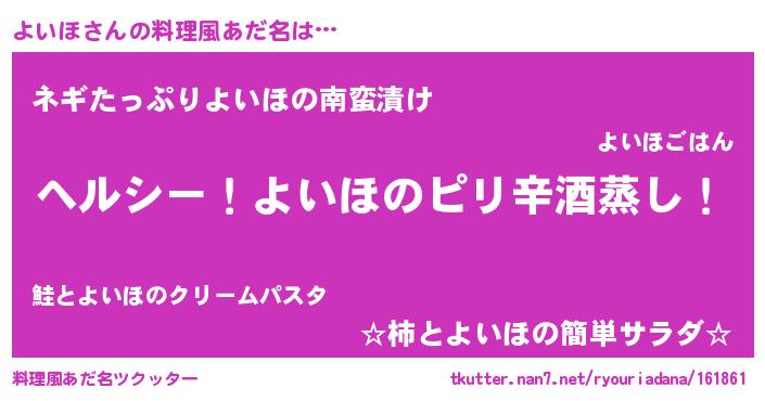 | 意味不明あだ名 | 『自称よいほ』『ペロリンよいほ』 |