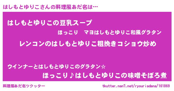 | ポケモン風あだ名 | 『ハシセウス』『ヒハシモトユリコ』 |
