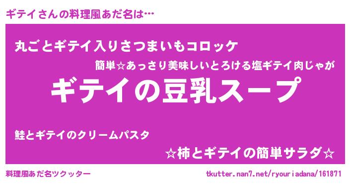 | 意味不明あだ名 | 『とにかく怪しいギテイ』『自称ギテイ』 |