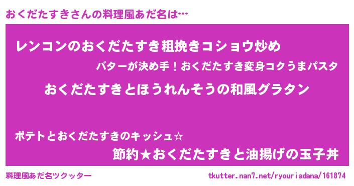 | 胡散臭い通販商品みたいなあだ名 | 『芸能人もオススメする高麗人参…その名も「おくだたすき」』 |