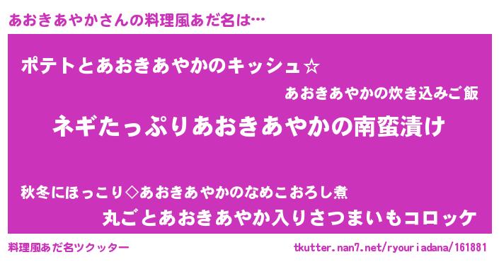 | 胡散臭い通販商品みたいなあだ名 | 『億万長者になれるブレスレット…その名も「あおきあやか」』 |