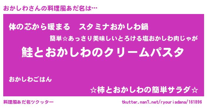 | ヒーロー風カッコイイあだ名 | 『慈愛の使者おかしわ』『ネオオカシワ』 |