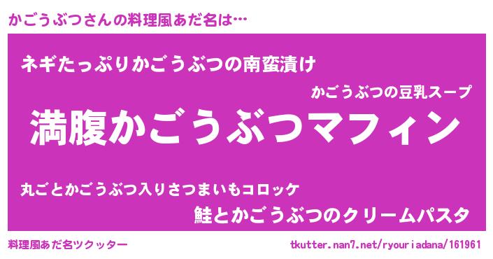 | 胡散臭い通販商品みたいなあだ名 | 『絶対に幸福をもたらす健康食品…その名も「かごうぶつ」』 |