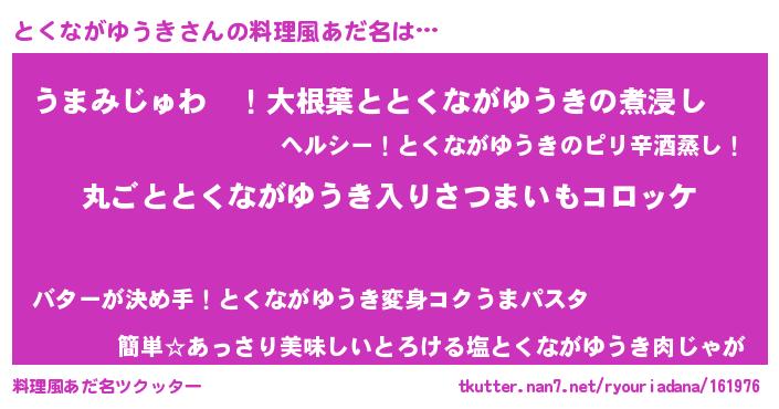 | ヘコむあだ名 | 『豆乳』『とくながゆうき(苦笑)』 |