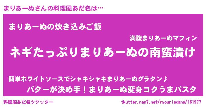 | ヘコむあだ名 | 『まりもー』『まりあーぬ(爆)』 |