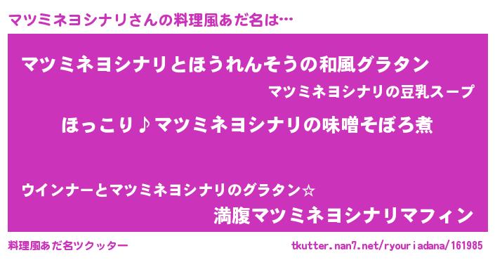 | ファンタジー風あだ名 | 『マツフェル』『ユリマツヴァット』 |