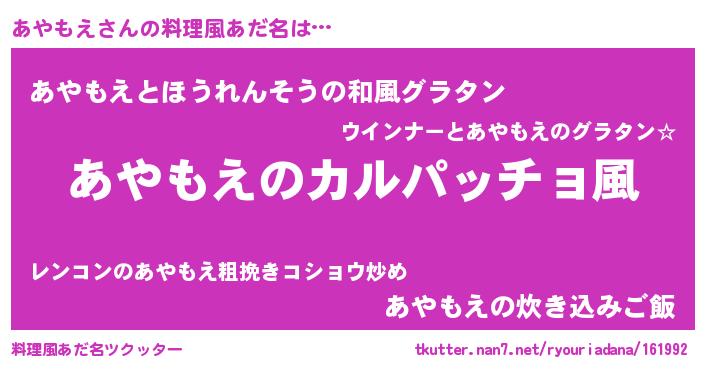 | ヒーロー風カッコイイあだ名 | 『仮面アヤダー』『ウルトラあやもえマン』 |