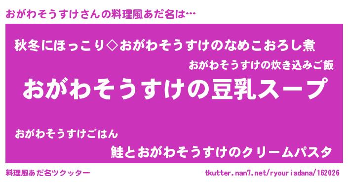 | 女子向けラノベタイトル風あだ名 | 『おがわそうすけは平凡を望む』 |