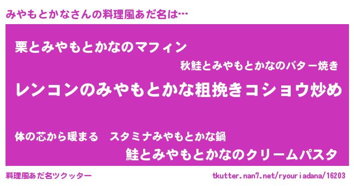 | 胡散臭い通販商品みたいなあだ名 | 『ガンによく効くアガリクス…その名も「みやもとかな」』 |