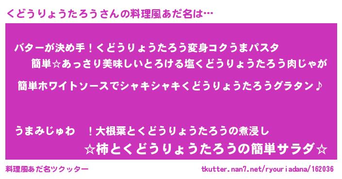 | 意味不明あだ名 | 『とにかく怪しいくどうりょうたろう』 |