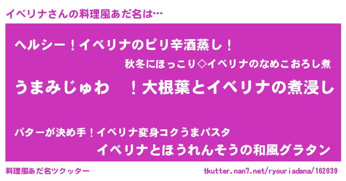 | 恥ずかしいあだ名 | 『イベっちょ』『イベリナデラックス』 |