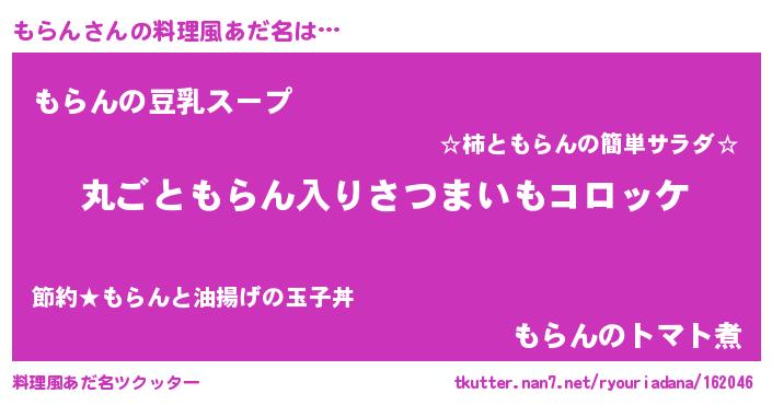 | 意味不明あだ名 | 『住所不定無職もらん(79歳)』『自称もらん』 |