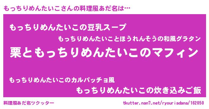 | 意味不明あだ名 | 『とにかく怪しいもっちりめんたいこ』 |