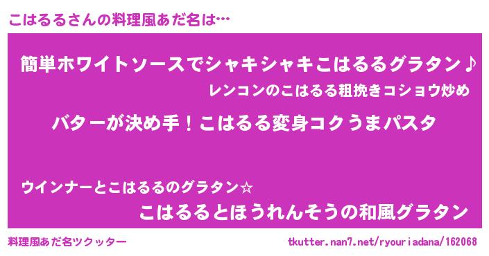 | 女子向けラノベタイトル風あだ名 | 『こはるる恋絵巻』『こはるる様がみてる』 |