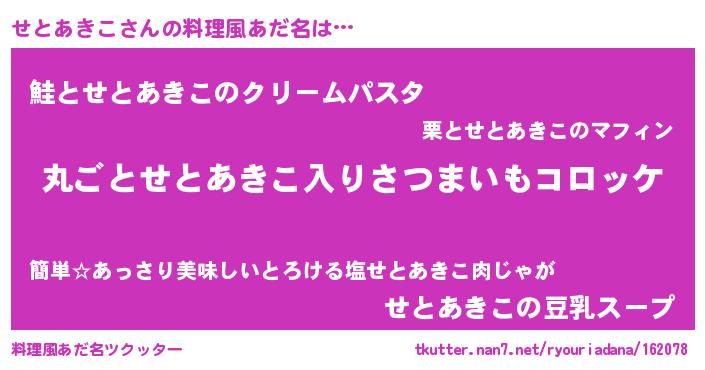 | ヘコむあだ名 | 『せとっ子』『せとあきこ(小並感)』 |