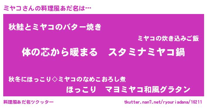 | 男性向けラノベタイトル風あだ名 | 『やはりミヤコの青春ラブコメはまちがっている 』 |