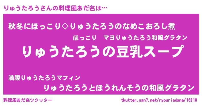 | 男性向けラノベタイトル風あだ名 | 『ダンジョンにりゅうたろうを求めるのは間違っているだろうか』 |