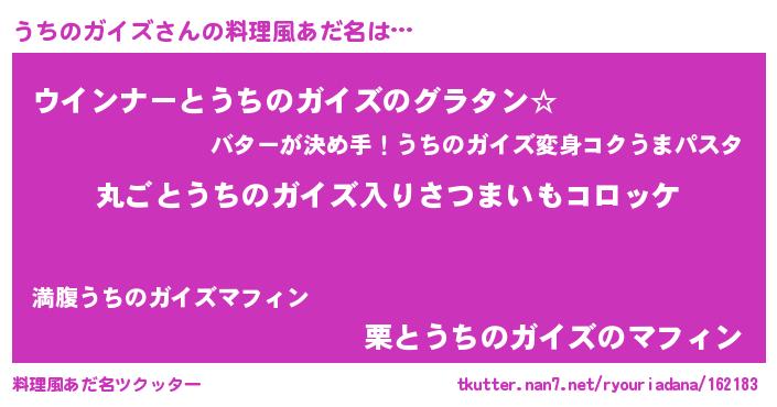 | ヘコむあだ名 | 『なまこ酢』『うちのガイズ(震え声)』 |