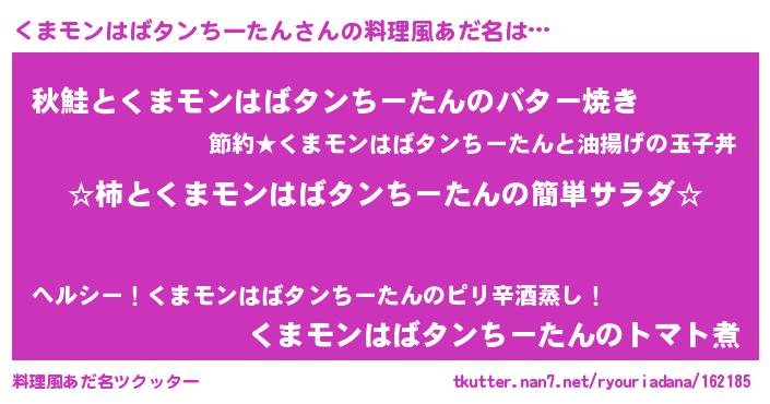 | 意味不明あだ名 | 『永久保存くまモンはばタンちーたん』 |