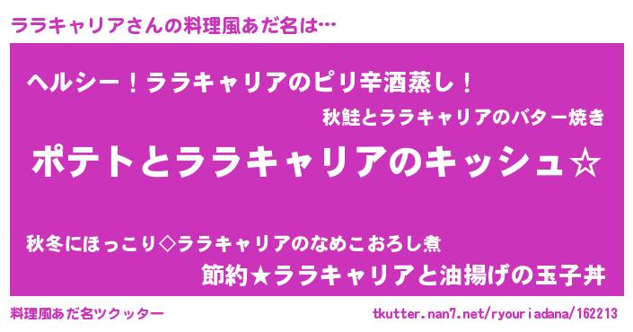 | ヘコむあだ名 | 『ララを』『ララっふぃ~』 |