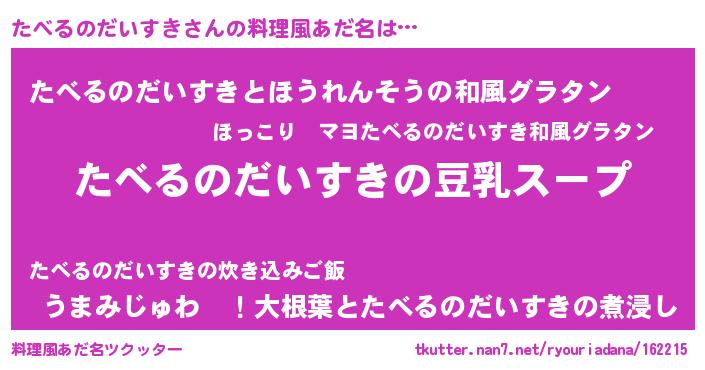 | ポケモン風あだ名 | 『ヒタベルノダイスキ』『タベキング』 |
