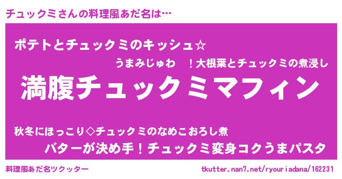 | 胡散臭い通販商品みたいなあだ名 | 『絶対に幸福をもたらす健康食品…その名も「チュックミ」』 |