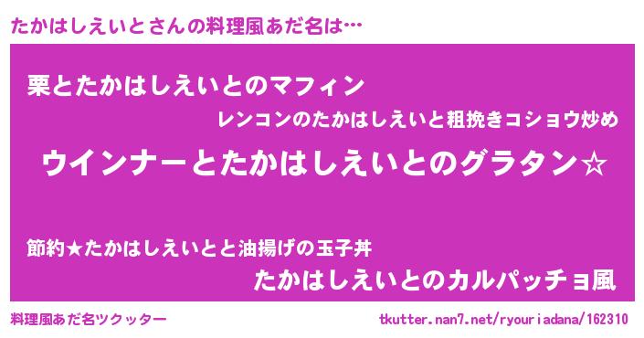 | ヘコむあだ名 | 『なまこ酢』『たかふぇ~』『たかお』 |