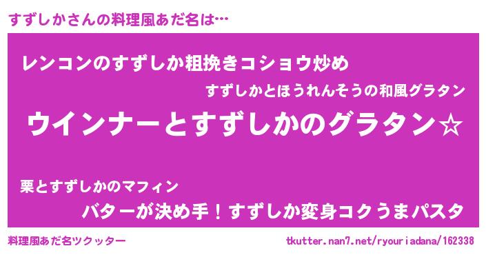 | 女子向けラノベタイトル風あだ名 | 『すずしか伯爵の花嫁』『すずしか恋絵巻』 |