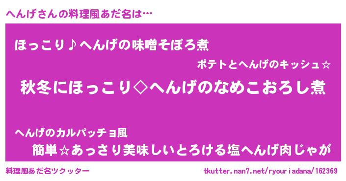 | ピコ太郎風あだ名 | 『ヘコ五郎』『ピコヘ郎』『ヘン八郎』 |
