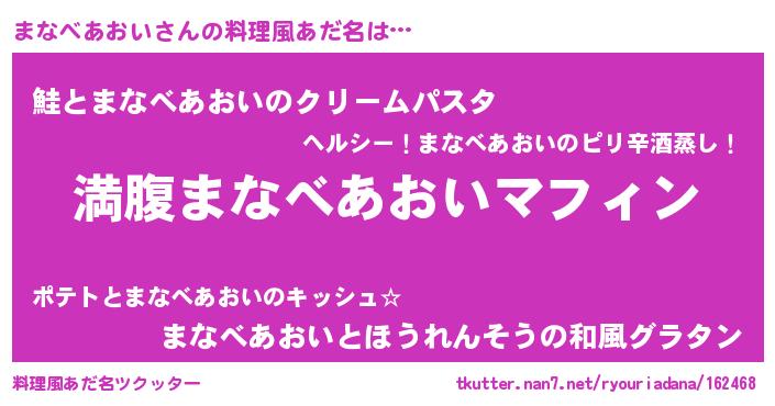 | 胡散臭い通販商品みたいなあだ名 | 『絶対に幸福をもたらす健康食品…その名も「まなべあおい」』 |