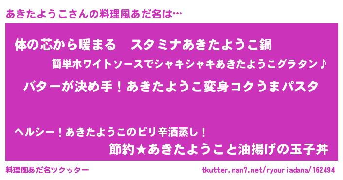 | ヒーロー風カッコイイあだ名 | 『愛の使者あきたようこ』『炎刃騎士アキ』 |