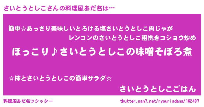 | ヘコむあだ名 | 『さいにゅー』『さいとうとしこ(笑)』 |