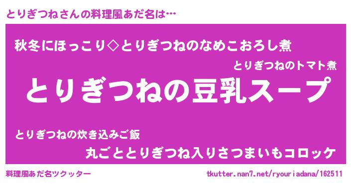 | 意味不明あだ名 | 『とにかく怪しいとりぎつね』 |