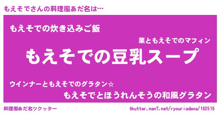 | 女子向けラノベタイトル風あだ名 | 『もえそでは平凡を望む』 |