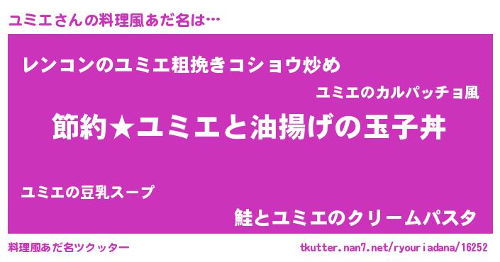 | 男性向けラノベタイトル風あだ名 | 『ユミエの憂鬱』『魔法科高校のユミエ』 |