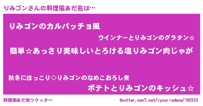 | 意味不明あだ名 | 『永久保存りみゴン』『ペロリンりみゴン』 |