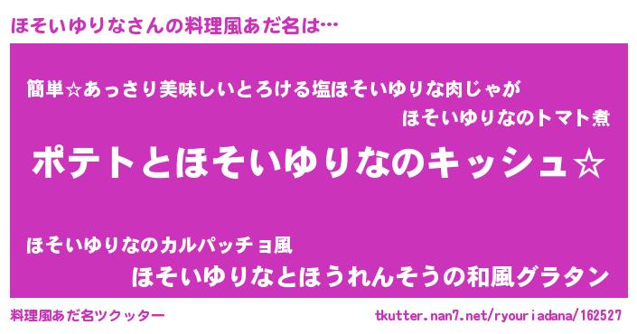 | ヘコむあだ名 | 『ほそっ子』『ほそいゆりな(小並感)』 |