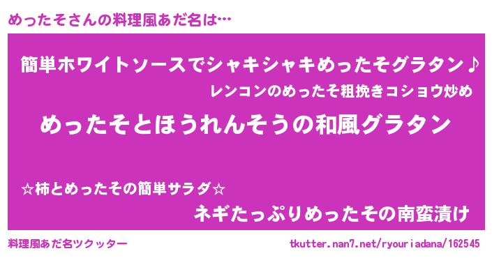 | 男性向けラノベタイトル風あだ名 | 『めったそ~年齢イコール彼女いない歴の魔法使い~』 |