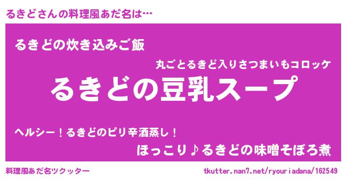 | ヘコむあだ名 | 『るきお』『るきもー』『るきど(笑)』 |