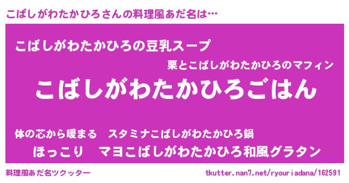 | 肩書あだ名 | 『こばしがわたかひろ大将』 |