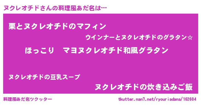 | 意味不明あだ名 | 『住所不定無職ヌクレオチド(77歳)』 |