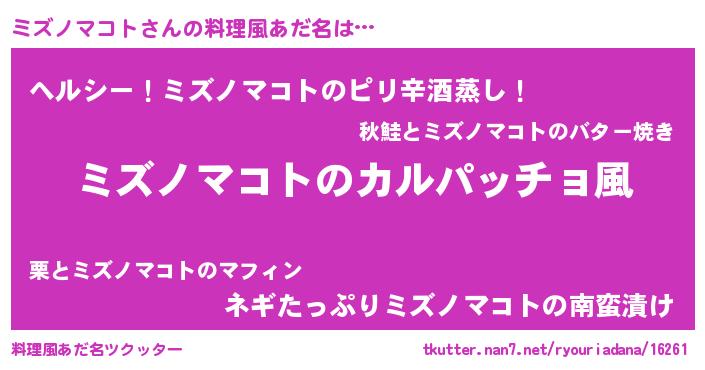 | ヘコむあだ名 | 『ミズにー』『ミズノマコト(苦笑)』 |