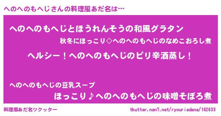 | 胡散臭い通販商品みたいなあだ名 | 『芸能人もオススメする高麗人参…その名も「へのへのもへじ」』 |