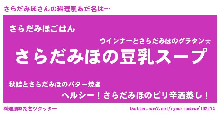 | 意味不明あだ名 | 『とにかく怪しいさらだみほ』 |