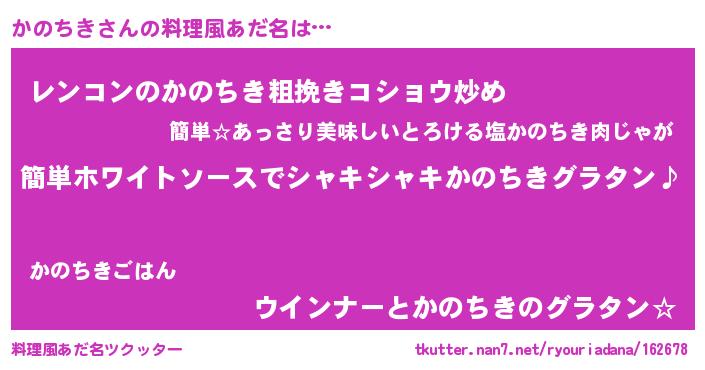 | 意味不明あだ名 | 『とにかく怪しいかのちき』 |