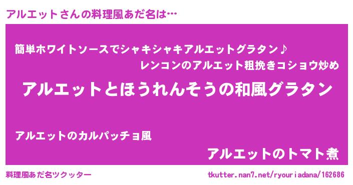 | 意味不明あだ名 | 『ニラ科アルエット属』『自称アルエット』 |