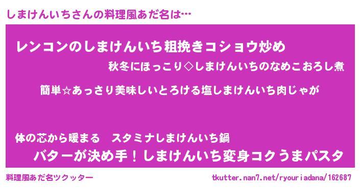 | 胡散臭い通販商品みたいなあだ名 | 『前代未聞の健康食品…その名も「しまけんいち」』 |