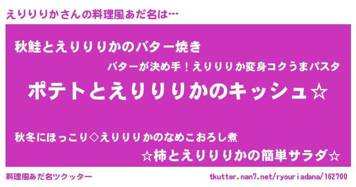 | 女子向けラノベタイトル風あだ名 | 『えりりりかの卵を拾いまして』 |