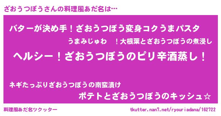 | 男性向けラノベタイトル風あだ名 | 『Re:ざおうつぼうから始める異世界生活』 |