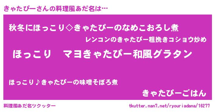 | 男性向けラノベタイトル風あだ名 | 『この素晴らしい世界にきゃたぴーを!』 |